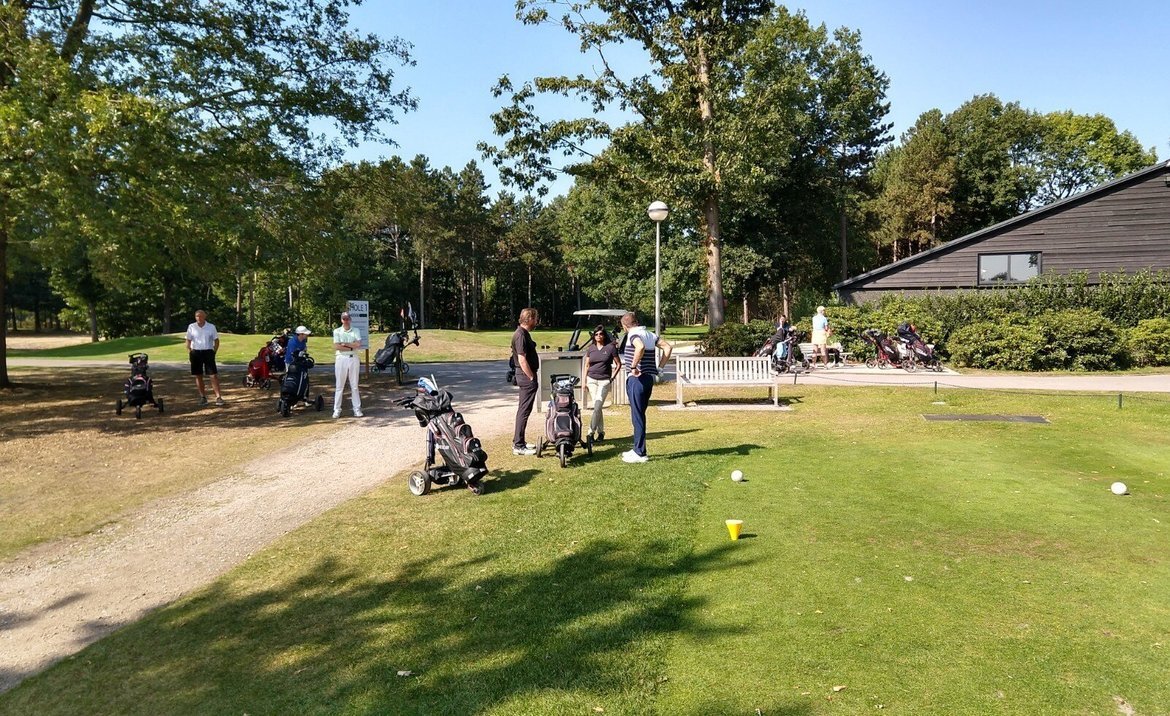 Het was prachtig weer op deze 19e september. De baan ligt er ook prachtig bij met best snelle greens die prima rolde. Mooi weer en een mooie baan om de dag op door te brengen. Normaal zouden wij om 13.00 starten vanaf de eerste tee en dan zou de eerste flight tussen de 4 a 4,5 uur later binnen kunnen zijn, maar dat bleek niet mogelijk vandaag.