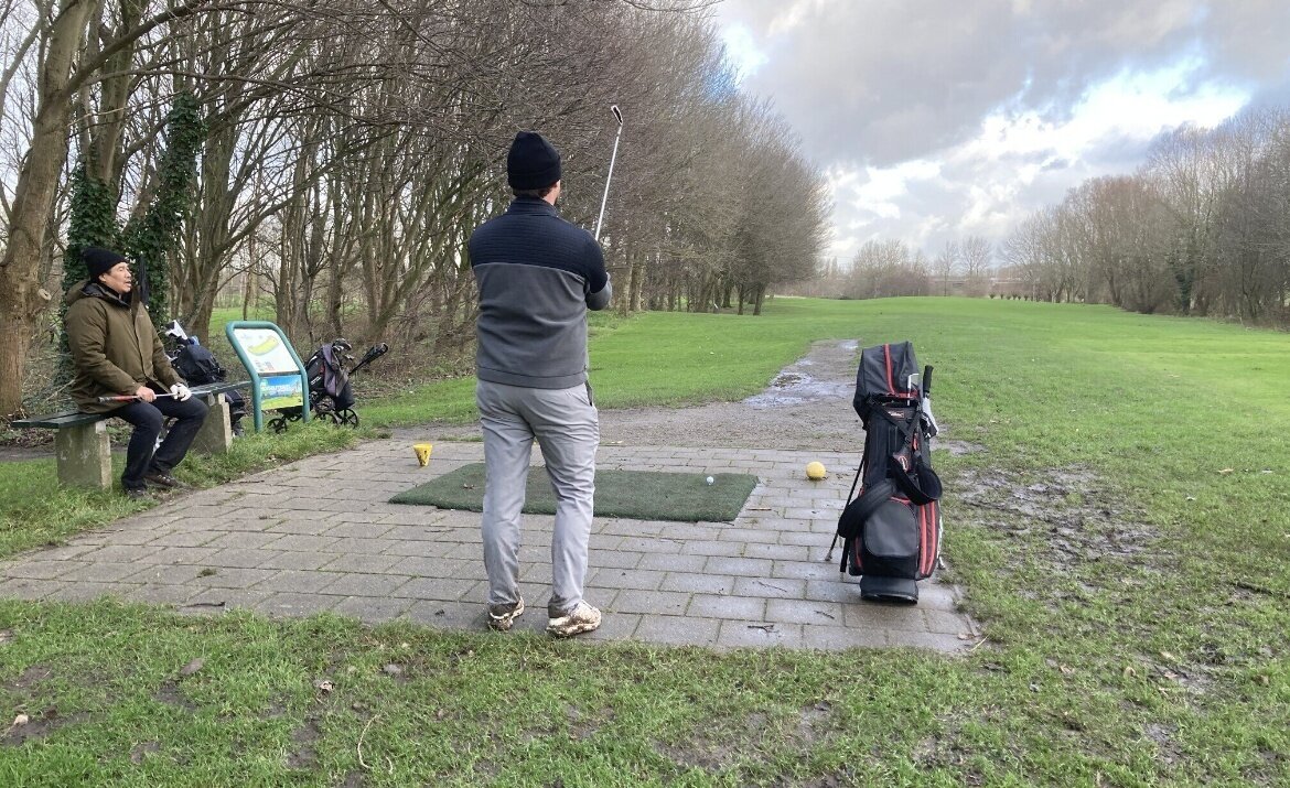 Het leek wel Mud Masters! Of Strong Viking Obstacle Run! Of Spartan Dirt Challenge! Maar nee, het waren gewoon 17 dappere GVN'ers die de ondergelopen golfbaan Spaarnwoude trotseerden. Bal op de fairway, in de rough of in de waterhindernis maakte geen verschil: je moest die steeds eerst vissen of uitgraven. Zoeken naar een droog plekje voor een gratis drop was nutteloos. Dus gewoon weer terugleggen op een atol van een grassprietje of modderhopje, en boom-splash! Gezicht vol modderspatten en bal weer een paar meter vooruit. Ondertussen kroop de modder langs de regenbroek naar je sokken en in de schoenen. Gelukkig regende het maar een paar holes ijsregen en hagel, en was de wind maar 5-6 Beaufort zwak. Precies wat je verwacht van het laatste winter tour rondje van 2024. Genieten!