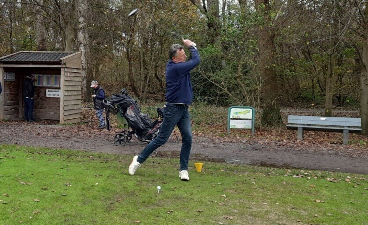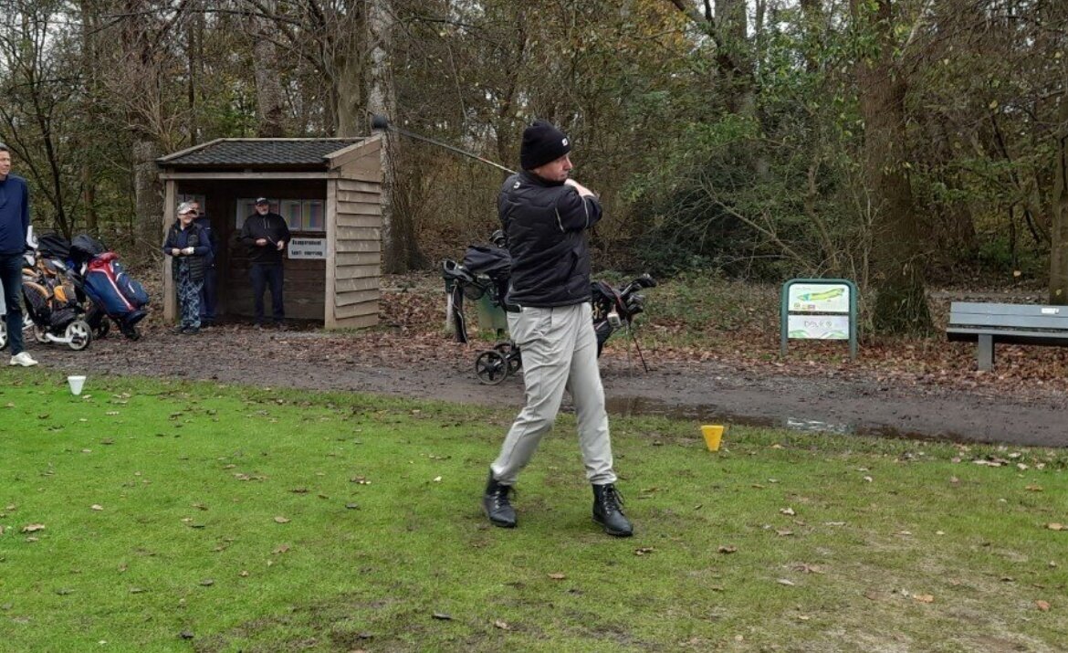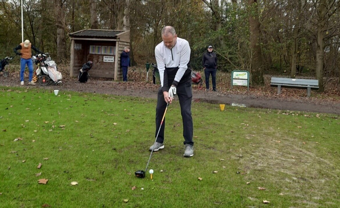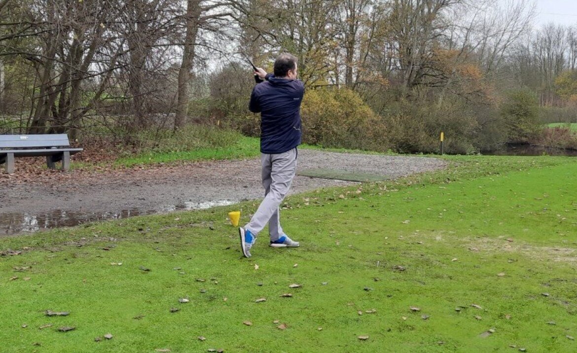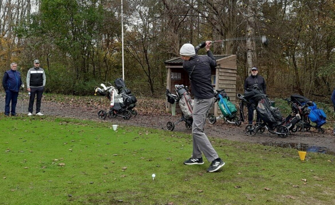 Ronde 7 alweer van de 3 seizoenen tour. Aan de start 17 deelnemers. Helaas kon nummer 18 niet starten daar er geen buggies in de baan mochten. En dat was ook wel begrijpelijk. De baan was flink drassig. En dat met de vele bladeren maakte dat menig bal achterbleef op of naast de fairways.