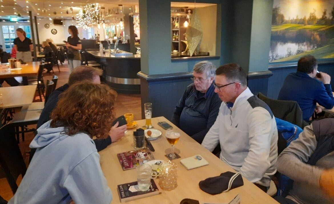 Er is lekker gespeeld. Niet te langzaam ook. De laatste flight was in 4 uur en 20 minuten van de baan. Hoeveelheid gemaakte birdies viel tegen, maar 2 stuks deze keer. Eentje door Jeroen en eentje door Henk. Dit keer geen leary, maar 2 neary's. Op de PAR3 hole 8 van de Leij was het Leen die als eerste de bal op de green wist te krijgen. Maar helaas voor Leen slaat Dirk een geweldige 5-ijzer op 1,5 meter van de vlag. Geen birdie voor Dirk, wel een slofje ballen en een zak kruidnoten die Sint en Piet hadden laten liggen bij het schoentje van Hans, speciaal voor deze wedstrijd. Op de PAR3 hole 2 van de Blaak was het weer Leen die de bal als eerste op de green kreeg. Die Leen, harde werk loont! Want deze is niet verbeterd en gaat Leen ook naar huis met een slofje ballen en zak kruidnoten van de Sint.