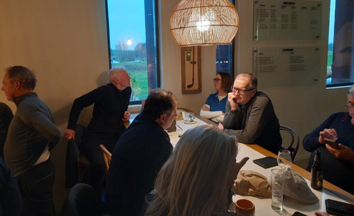Op tijd ging iedereen de baan in. De eerste flights waren zelfs te vroeg bij de doorstart waardoor er gewacht moest worden. De 2e negen gingen iets langzamer maar uiteindelijk waren we binnen de 4½ uur terug in het clubhuis.
