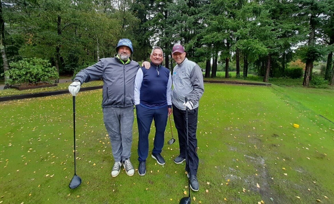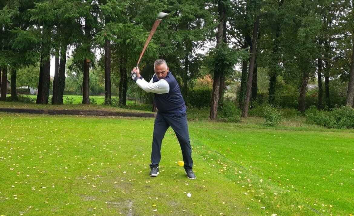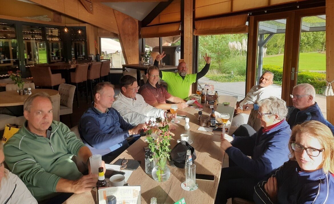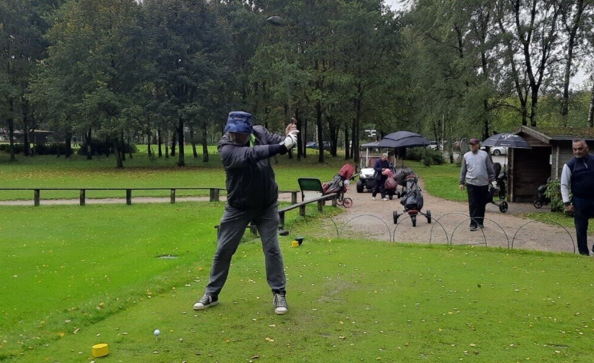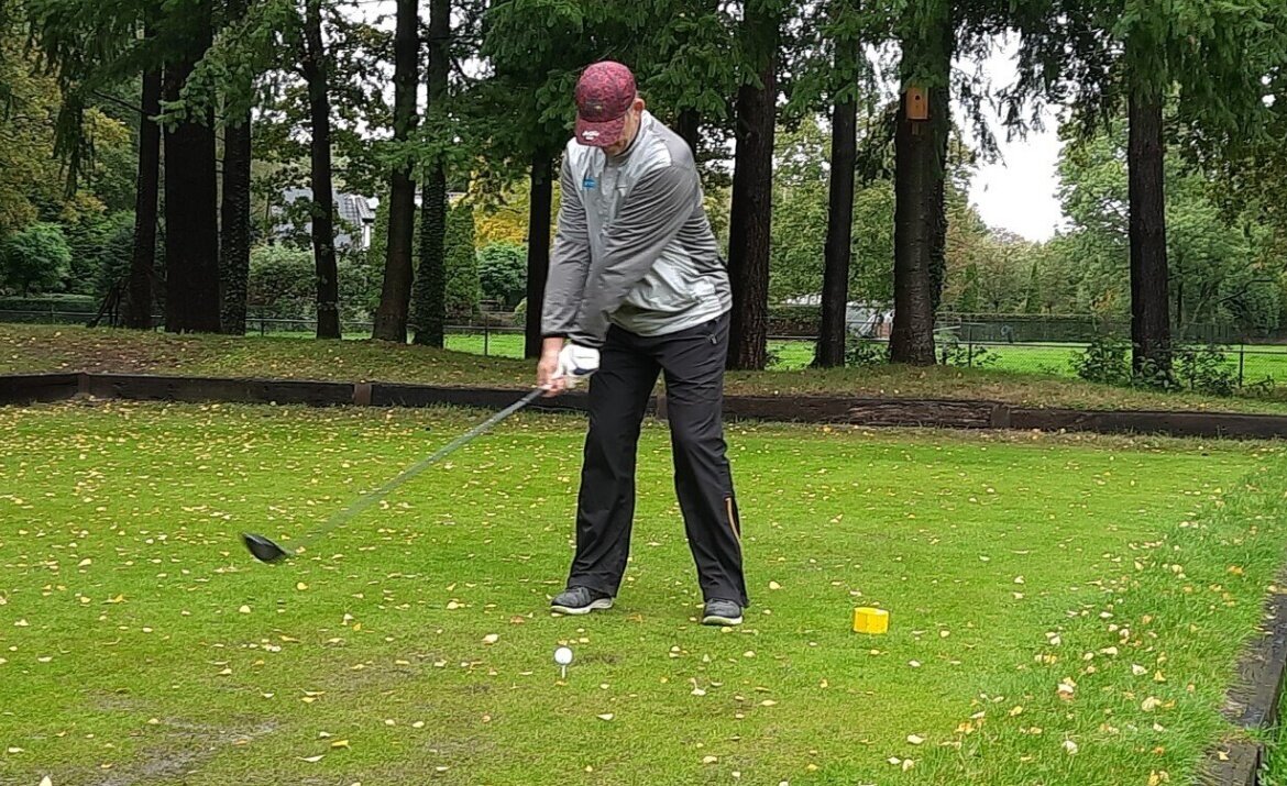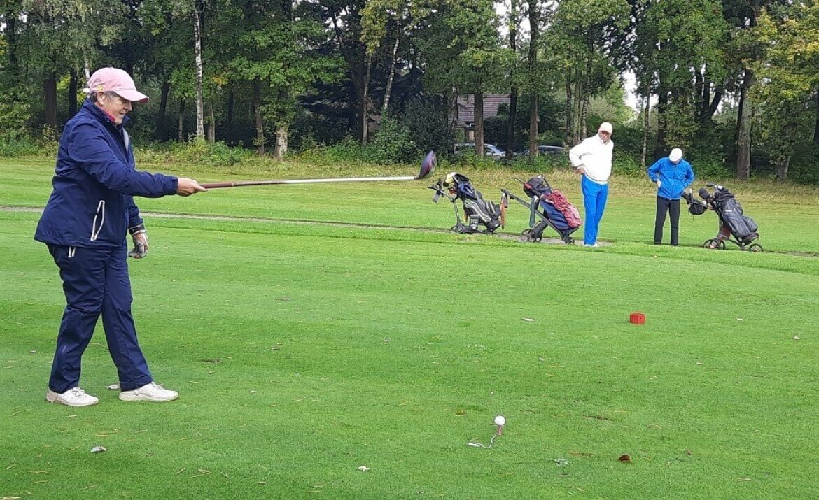 De GVN’er laat zich niet stoppen en met 14 spelers gingen we om 11:30 uur de baan in. Er stond een stevige wind en er zat inderdaad vocht in de lucht. Maar eigenlijk viel het verder absoluut mee met het weer. Een paar keer moest de paraplu er even aan te pas komen maar we zijn zeker niet verzopen. In de 2e helft was het zelfs bijna zomers.